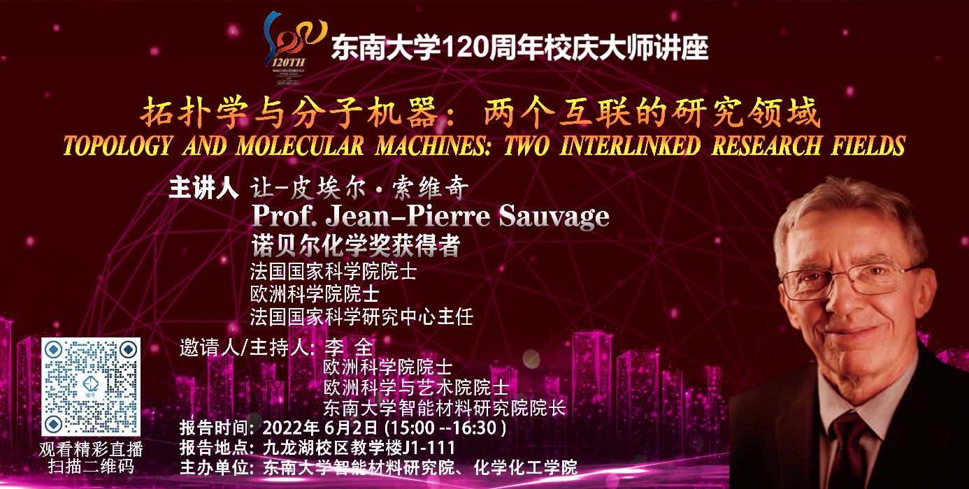 Sauvage教授是著名的法国化学家,斯特拉斯堡大学终生名誉教授,入选法国国家科学院院士、欧洲科学院院士、法国国家科学研究中心主任等。Sauvage教授主要从事无机配位化学,超分子化学,索烃,分子自组装以及分子纳米系统的研究,是超分子拓扑化合物研究的开拓者。他开发了分子识别与组装过程中模板合成机械互锁型分子(如轮烷和索烃)的方法,大力推动了该领域的发展。因在分子机器设计与合成方面的突出贡献,与J. Fraser Stoddart教授、Bernard L. Feringa教授一同获得了2016年诺贝尔化学奖。Sauvage教授由于其杰出的科研工作,先后获得法国科学研究中心(CNRS)铜奖(1978)、法国科学研究中心(CNRS)银奖(1988)、Izatt-Christensen奖(1991)、Prelog金奖(1994)、Nessim Habif世界大学奖(1998)、法国化学会Pierre Süe奖(2005)、西班牙皇家化学会Sabatier奖(2005)、Woodward卟啉化学奖(2008),还被授予荣誉军团骑士勋章。