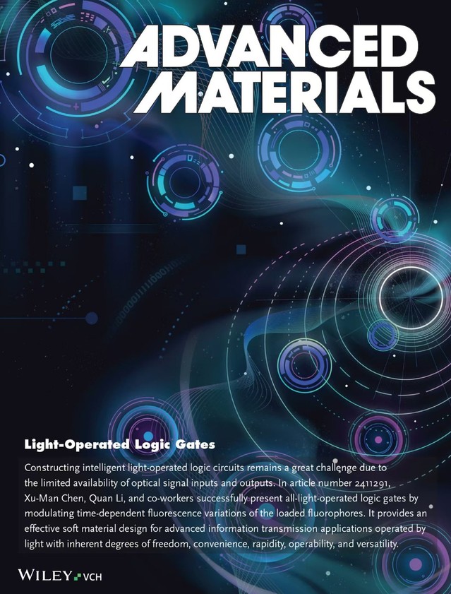 近日,bet体育365官网网站、智能材料研究院李全院士团队提出了一种全光输入输出的光控动态逻辑门构筑策略。相关成果以“Light-Operated Diverse Logic Gates Enabled by Modulating Time-Dependent Fluorescence of Dissipative Self-Assemblies”为题发表在国际权威期刊《Advanced Materials》上,并被选为当期“Frontispiece”。bet体育365官网网站硕士研究生魏佳豪为第一作者,李全院士和陈旭漫副教授为共同通讯作者。